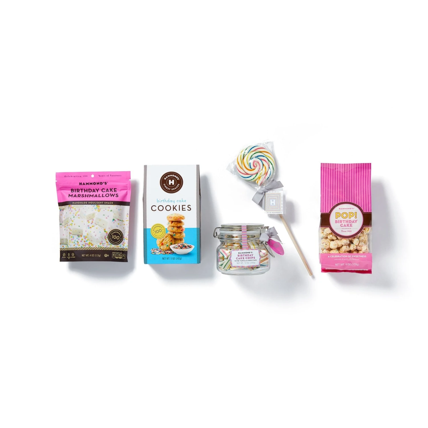 Make their birthday extra special with our Birthday Treats Gift Box! Packed with all our favorite birthday flavors, it’s the perfect indulgence for any sweet tooth. From birthday cake filled chips to confetti popcorn and more, this gift is sure to delight and make their day unforgettable. Show someone you care with this fun and delicious birthday surprise!Birthday collection includes: