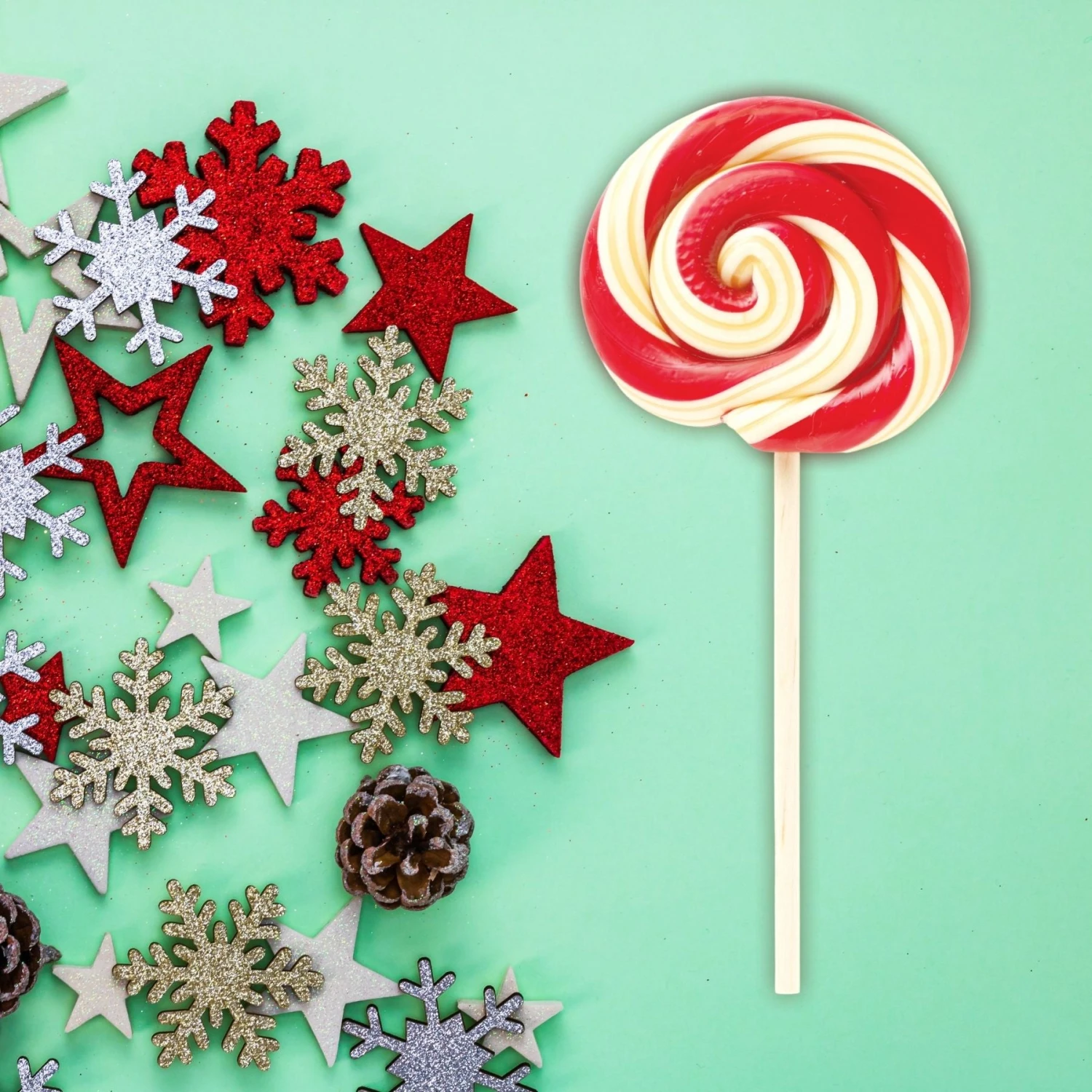 - 1 oz. lollipops approximately 7″ from the top of the lollipop to the bottom of the stick and approximately 2.25″ in diameter