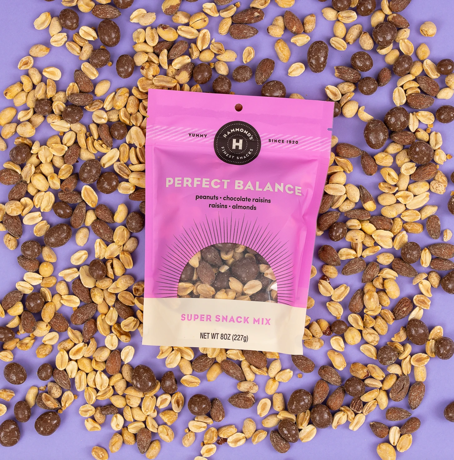 Our Perfect Balance Snack Mix is a tasty and nutritious blend of peanuts, chocolate raisins, raisins, and almonds that provides a perfectly balanced mix of sweet and savory flavors, with a variety of textures to keep things interesting. This snack mix is a great source of healthy fats and protein, thanks to the inclusion of peanuts and almonds. Meanwhile, the raisins and chocolate-covered raisins offer a natural sweetness that will satisfy your sweet tooth.